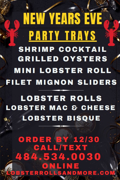 Lobster Rolls & More at Char at Ridge Hall in Ambler is accepting party tray orders for New Year’s Eve through December 30th. Ring in the New Year while enjoying shrimp cocktail, grilled oysters, mini lobster rolls, filet mignon sliders, lobster mac and cheese, and more.