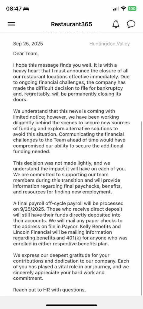 According to BreweriesinPA.com, the email below was circulated to employees from an anonymous manager of their Huntingdon Valley (785 Huntingdon Pike, Lower Moreland Township) location: