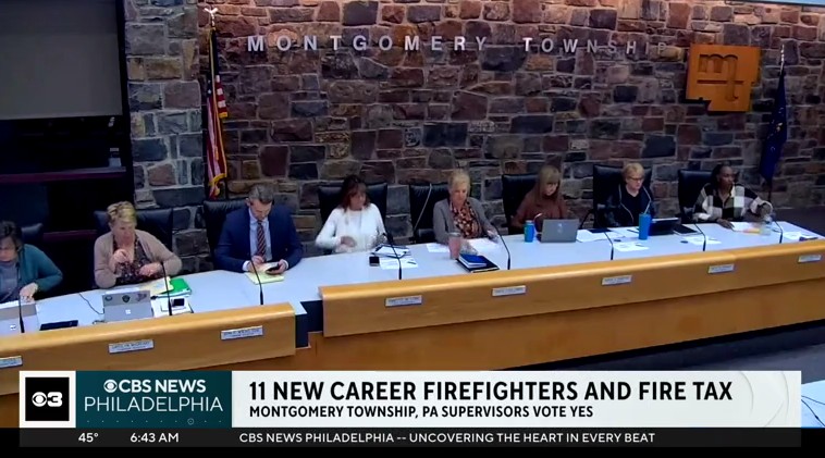 Montgomery Township’s Board of Supervisors voted Monday night to hire 11 more career firefighters and voted to establish a “fire tax” to pay for them, CBS News reported.